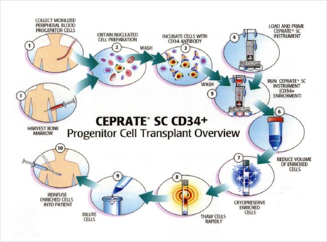 While almost any cell can be selected and purified with this technology, CellPro has focused on applications lending themselves to early commercialization in well-defined markets. Primary among these are hematopoietic stem cells and cells of the immune system.